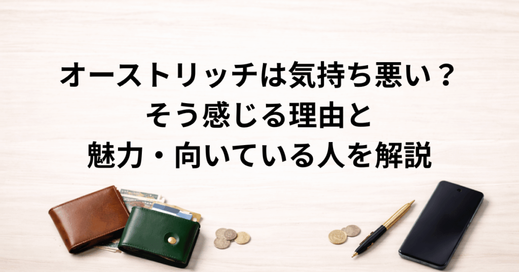 【】 「オーストリッチ 気持ち悪い」と検索すると、独特な見た目に少し抵抗を感じている方も多いのかなと感じます。結論から言うと、オーストリッチレザーは気持ち悪いと感じる人が一定数いる一方で、高級素材として評価されている側面もあると言われてい... -