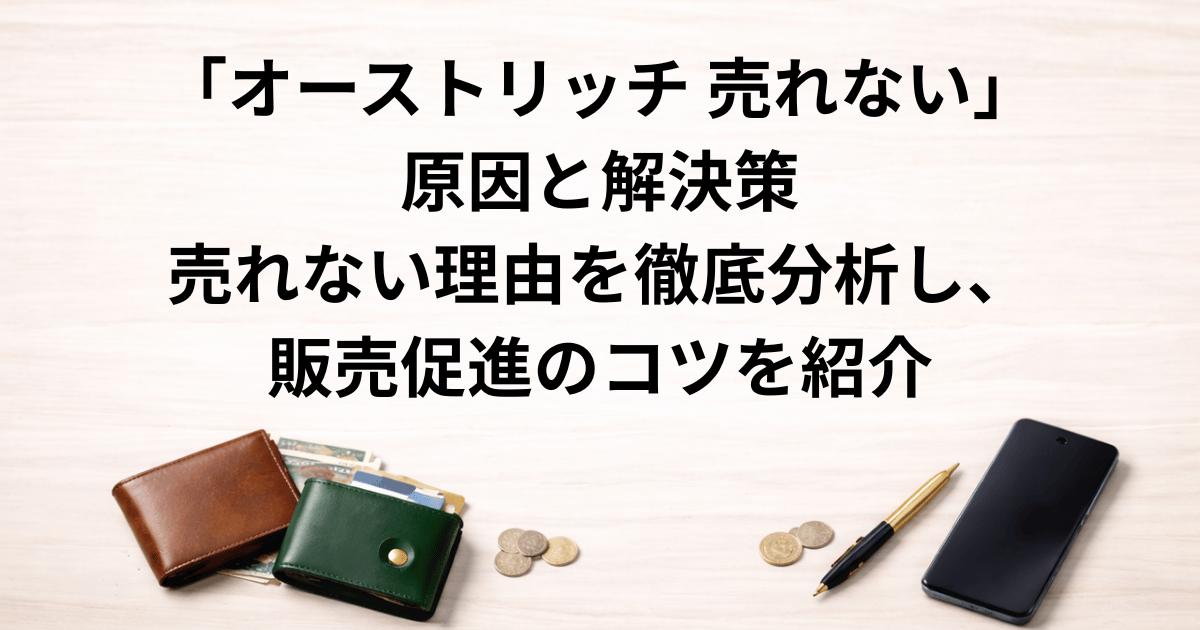オーストリッチ製品が売れるようになるためには、価格設定の見直し、ターゲット層に合わせたプロモーション、インフルエンサーやオフラインイベントを活用することが効果的です。今すぐ実行できる方法から始め、段階的に売上向上を目指すことで、オーストリッチ製品の魅力を広めることができるでしょう。