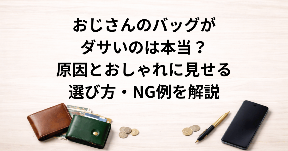 「結局、おじさんのバッグってダサいの?」と気になりますよね。結論としては、バッグそのものというより“選び方と使い方”で印象が大きく変わると言われています。