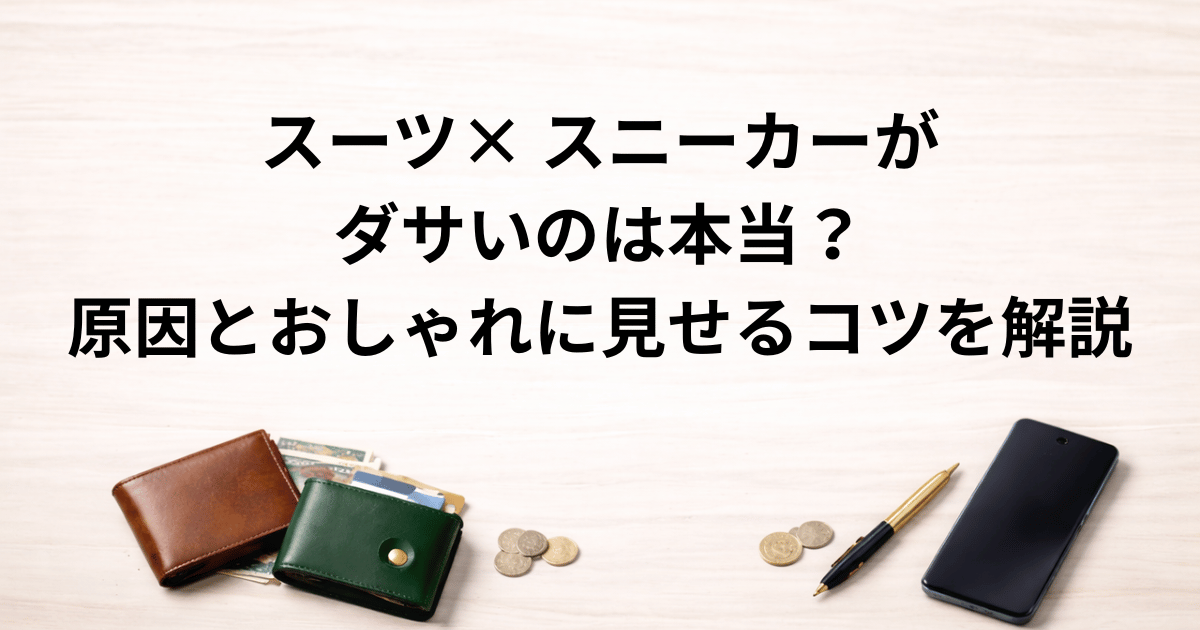 「スーツにスニーカーって難しそう…」と思いますよね。でも実は、ポイントさえ押さえれば一気におしゃれに見えるスタイルとも言われています。ここでは、ダサく見せないためのコツをわかりやすくまとめていきます。