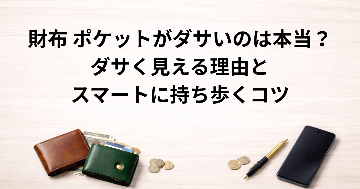 「財布をポケットに入れるのって、やっぱりダサいのかな?」と気になる方は多いですよね。結論からいうと、財布をポケットに入れること自体が、必ずしもダサいとは言い切れないようです。実際、参考記事や上位記事でも、ポケット収納そのものを一律で否定するというより、「どこに入れるか」「どう見えるか」が印象を左右すると紹介されています。つまり、財布 ポケットがダサいと感じられやすいのは、持ち方そのものよりも、不自然な見え方が出ているケースだと言われています。