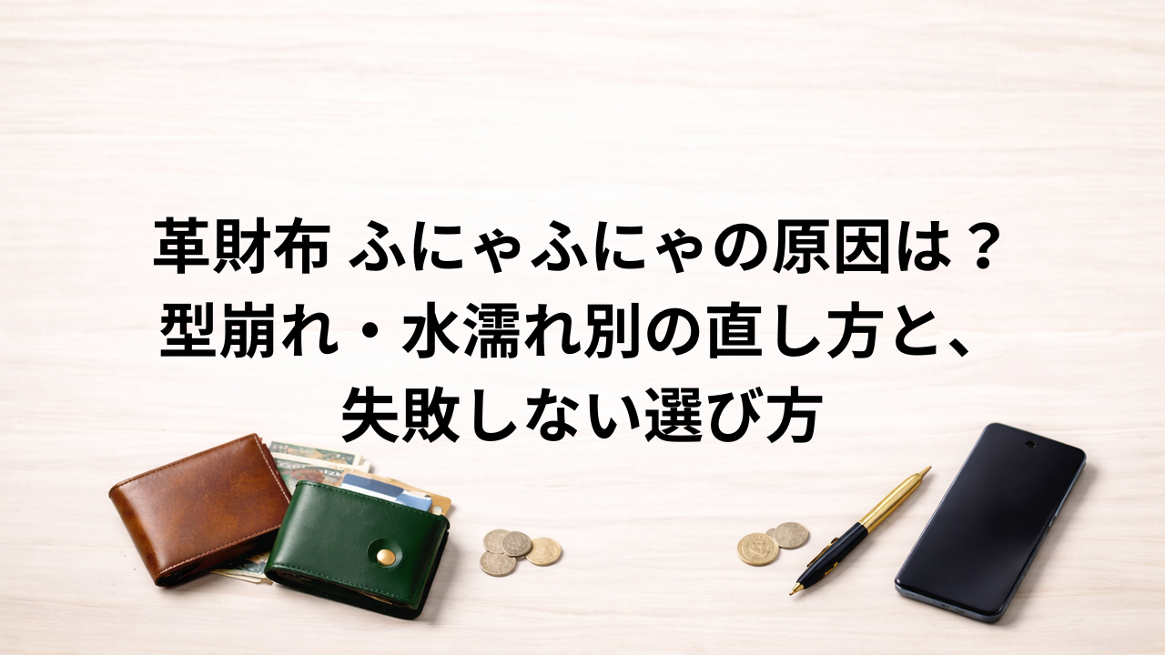この記事では、まず「あなたの革財布 ふにゃふにゃは、どのタイプか」をサクッと見分けるところから始めます。そのうえで、水濡れ・型崩れ・乾燥など状況別に、家でできる整え方を順番に紹介。さらに、同じことを繰り返さないための使い方・保管のコツ、そして「次に買うならここを見ておけば失敗しにくい」という選び方までまとめます。