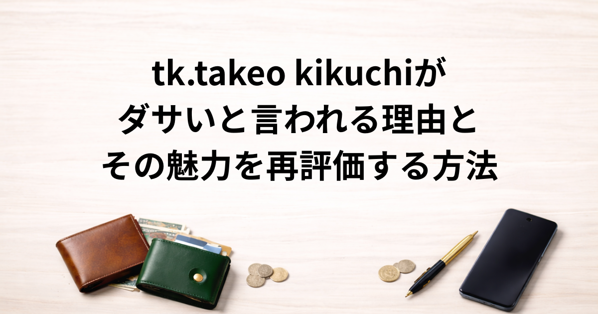 また、tk.takeo kikuchiは一度持つとその質感や長持ちする耐久性が実感できるため、実際に使うことでその価値を理解できるブランドとも言われています。デザインやイメージだけでなく、実用的な価値もあることを知ることが、「ダサい」という誤解を解くための一歩となるでしょう。
